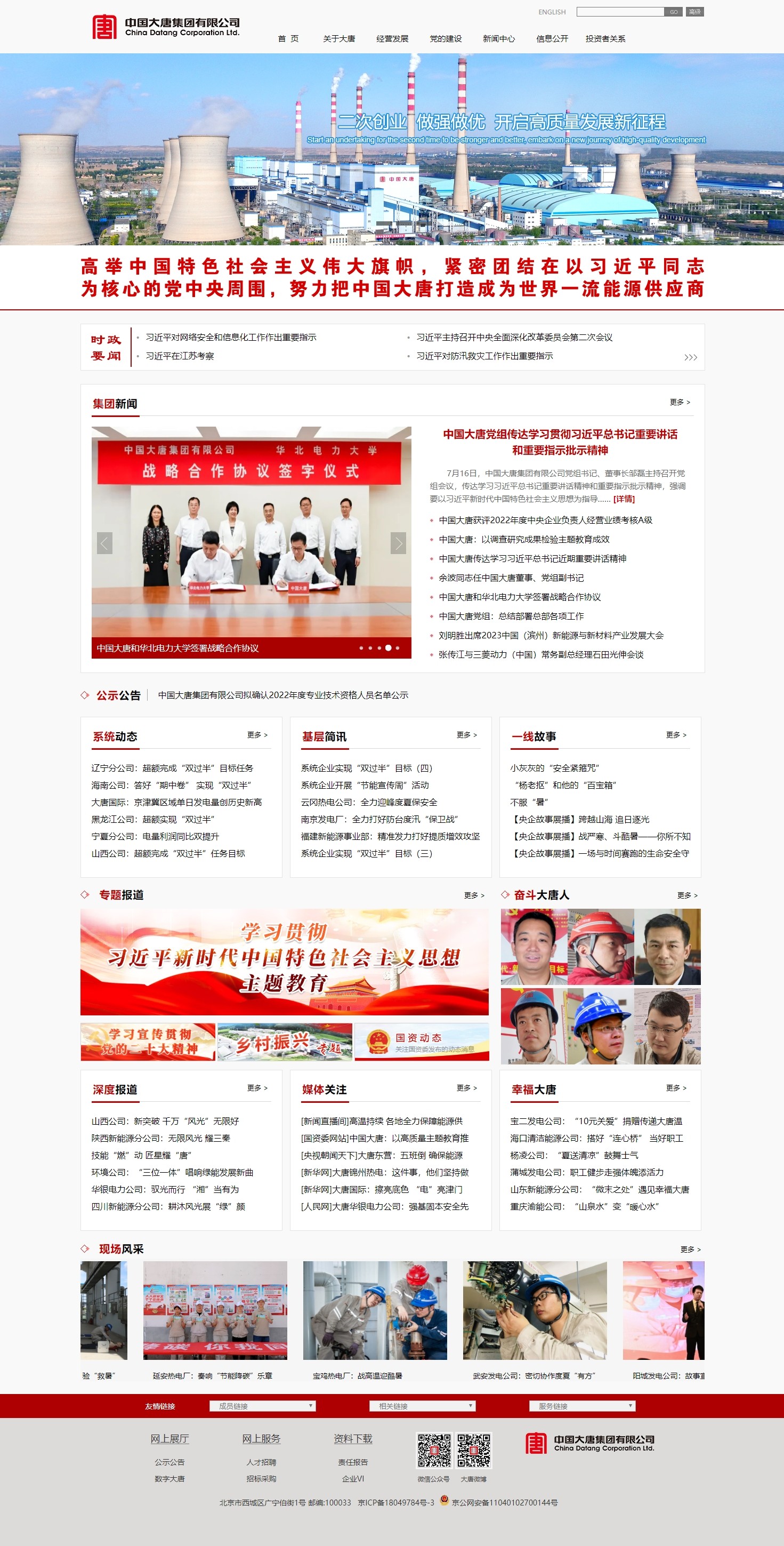 面向“十四五”及未来发展,中国大唐立足新发展阶段,贯彻新发展理念,融入新发展格局,奋力打造“中国最好、世界一流”能源供应商,服务“碳达峰”“碳中和”目标,在以中国式现代化推进中华民族伟大复兴的伟大进程中贡献大唐力量。
